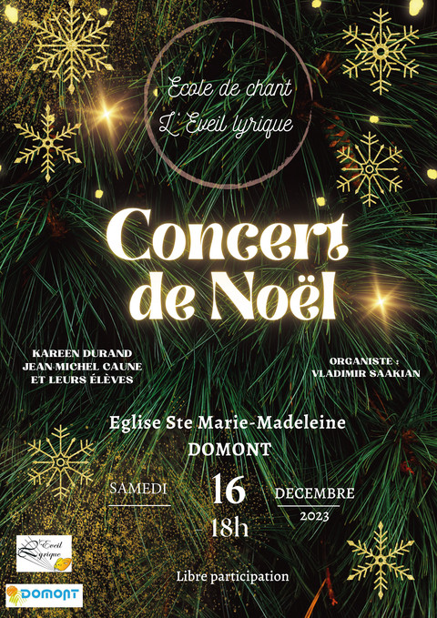 L'éveil Lyrique vous propose son concert de Noël avec les élèves et professeurs de l'école de chant.